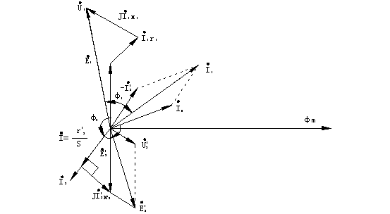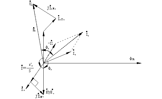 異步電機帶負載運行時的等效電路圖及各物理參數(shù)的相量關系圖如圖(1)、(2a)所示: