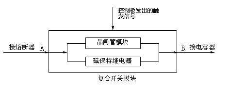 復(fù)合開關(guān)切除電容器過程:控制器輸出的觸發(fā)信號(hào)消失后,磁保持繼電器在等電位情況下先斷開,晶閘管經(jīng)延時(shí)后,在電流過零時(shí)斷開。