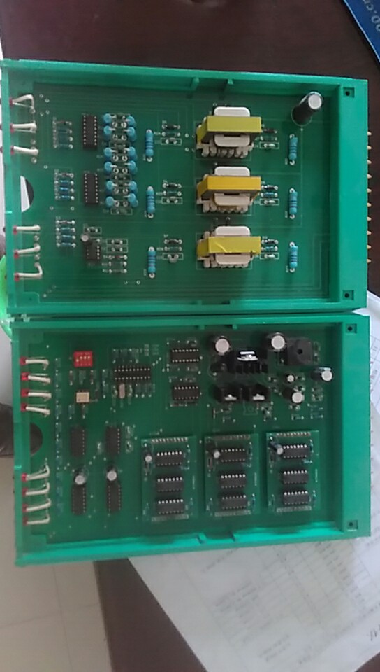 一、 開車 1.打開進相器前柜門,合上空氣開關(guān) QF1),進相器電源接通,柜體面板上的紅色指示燈,等待主電動機直動,關(guān)閉柜門。 2.主電動機起動,一直到起動完畢,主電動機正常運轉(zhuǎn)為止。 二、 投入進相 1.打開柜門,觀察控制單元是否正常,控制單元正常時,各指示燈顯示如下: 主板(中間一塊)。除上面三個指示燈(L1、L2、L3)周期性循環(huán)顯示外(注意:此指電動機在運轉(zhuǎn)時的狀態(tài)。如電動機未轉(zhuǎn),該三燈為隨機狀態(tài)), 其它五燈一直亮著。 驅(qū)動板(兩邊兩塊)。其上各指示燈(12個)均亮,并有微閃亮。 如有任一燈不符合上述狀態(tài),則表明控制單元有故障,應(yīng)維修好后方可進相。 2.用力按一下“進相”按鈕(SB1,綠色按鈕),進相器面板的紅燈滅、綠燈亮(HL2),開始進相。進相器上的電流表指針快速下跌并穩(wěn)定,功率因數(shù)表指針快速上升并穩(wěn)定(指針位于“滯后”區(qū)域)。 三、退相 用力按下“退相”按鈕SB2,紅色按鈕),紅燈亮、綠燈滅,進相器即退出進相狀態(tài)。 四、停車 進相器退相后,按下主機停車按鈕,電機即停車。