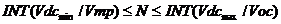 電池組件串聯(lián)數(shù)量計(jì)算如公式(1)所示,對(duì)應(yīng)參數(shù)詳見本工程所選250Wp組件和逆變器規(guī)格參數(shù)表。
